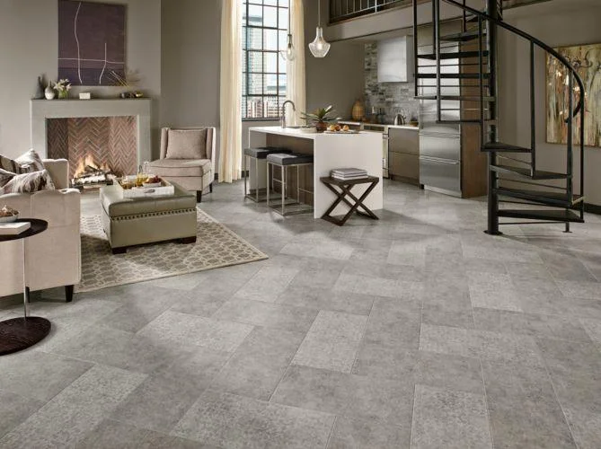 Luxury vinyl tile captures the beauty of stone or ceramic with added comfort and durability. Ideal for kitchens, bathrooms, and basements, LVT combines elegant designs and practical performance. Effortless installation makes updates fast and hassle-free.